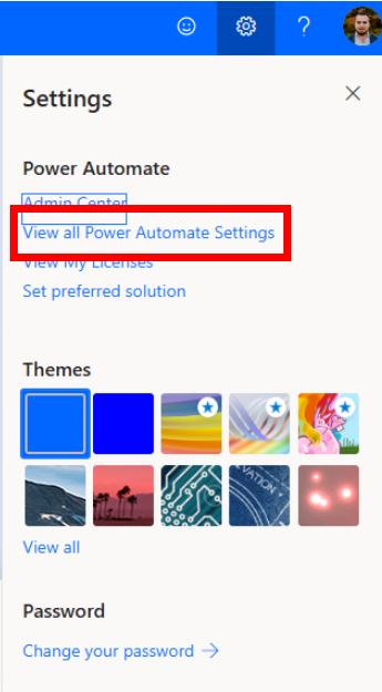 In het menu dat vervolgens opent klik je nu op “View All Power Automate Settings”: