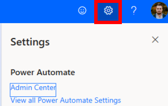 Om de taal van de cloud versie van Power Automate aan te passen navigeer je naar make.powerautomate.com. Vervolgens klik je op het tandwiel icoon rechts bovenaan je scherm.